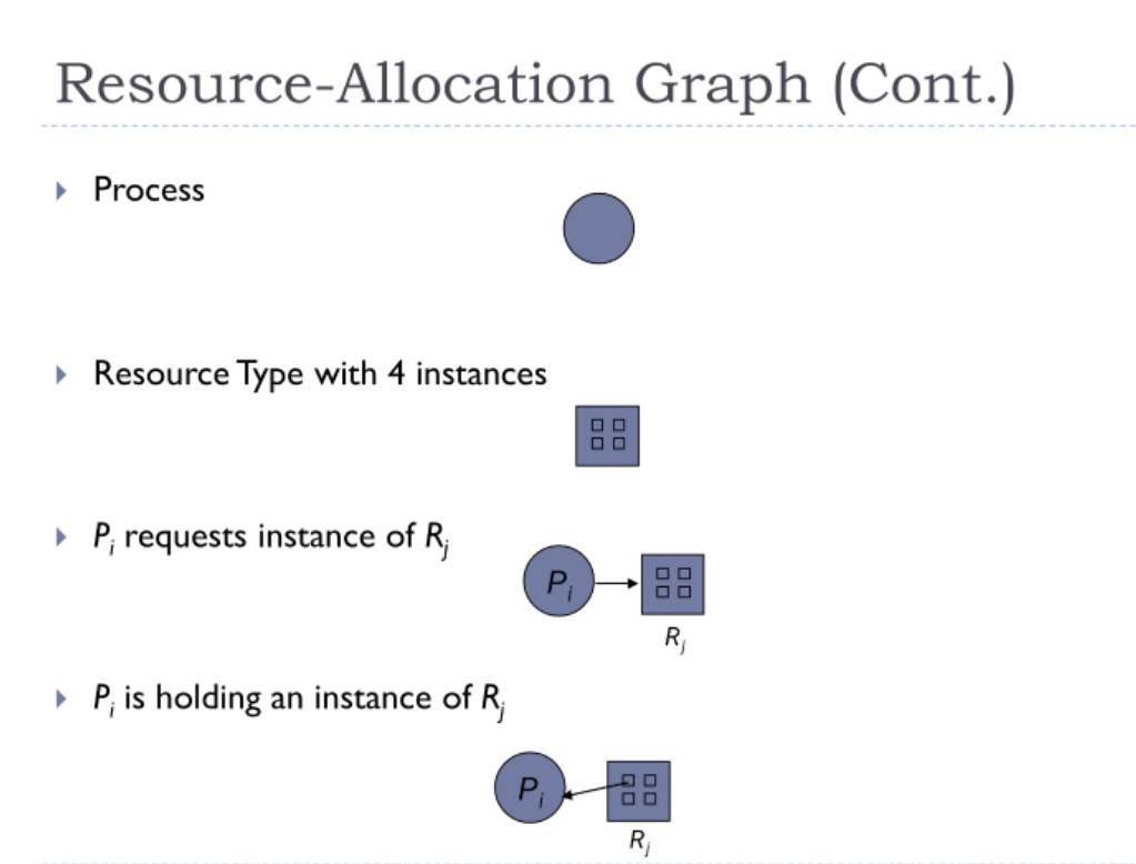 CPUmungkin punya 4 instance (pada prosesor quad-core). Sebuah thread yang meminta instance dari suatu tipe dapat dipuaskan oleh instance mana pun dari tipe tersebut.Siklus Penggunaan Sumber Daya: Sebuah thread harus menggunakan sumber daya dalam urutan yang jelas: