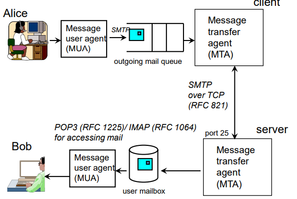 - User Agents (UA): Ini adalah aplikasi klien email yang digunakan oleh pengguna untuk membaca, menulis, mengirim, dan mengelola pesan. Contohnya termasuk Microsoft Outlook, Mozilla Thunderbird, atau antarmuka web seperti GMail.
