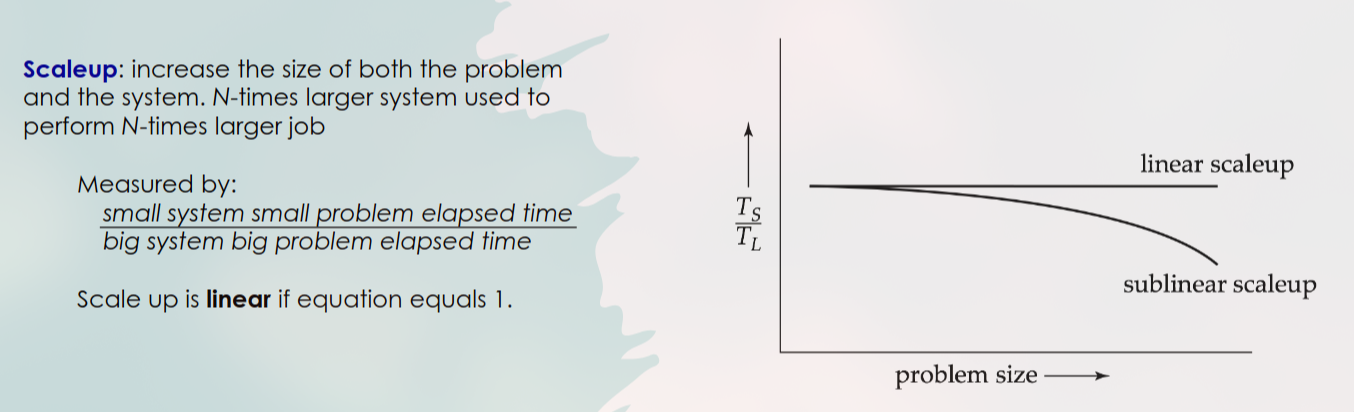 Batch Scaleup: Untuk 1 pekerjaan besar (misal: query data warehouse). Data 1TB di 16 CPU vs Data 10TB di 160 CPU.